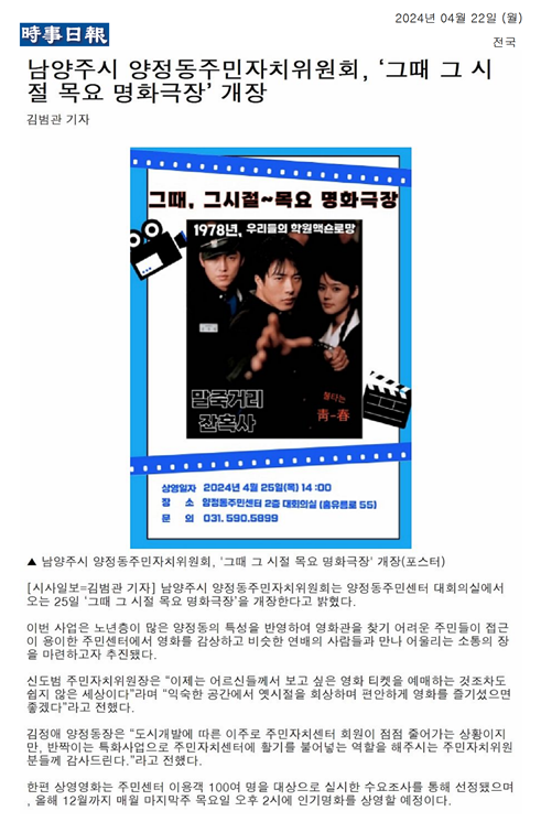 양정동주민자치위원회, '그때 그 시절 목요 명화극장' 개장