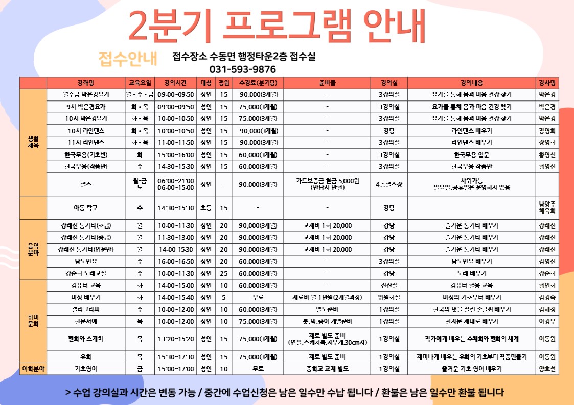 23년도 2분기 (4월~6월) 수강생모집 안내
