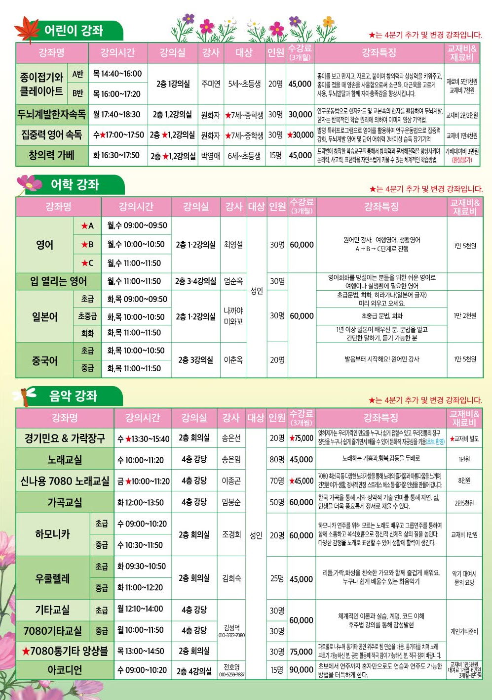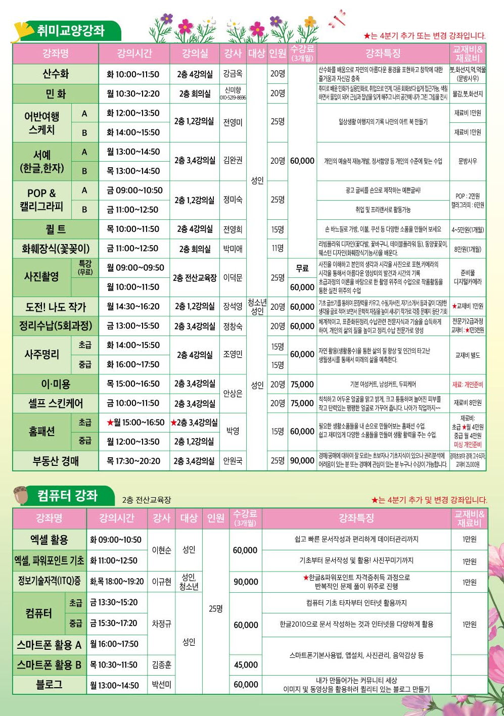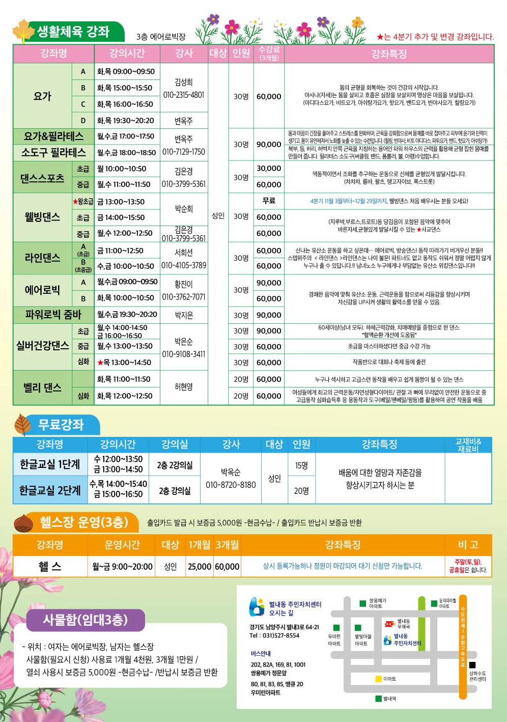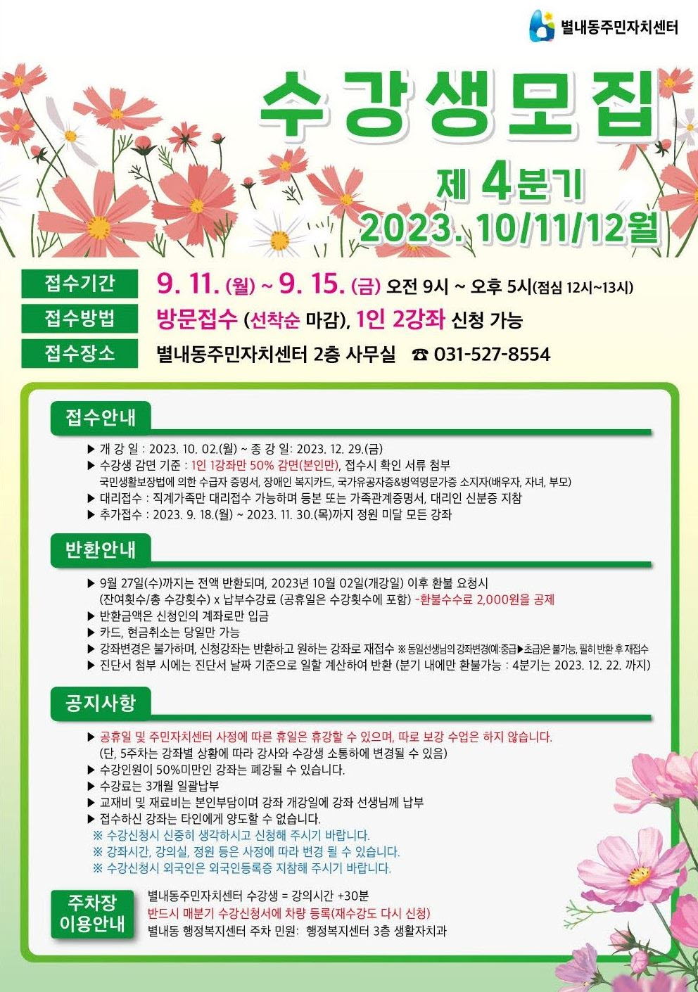 2023년 4분기 (10월, 11월, 12월) 별내동주민자치센터 수강생 모집