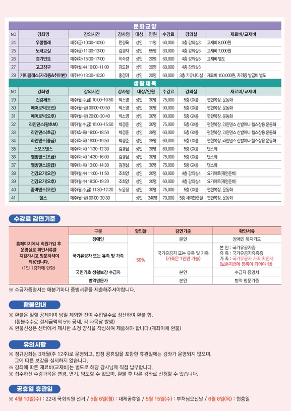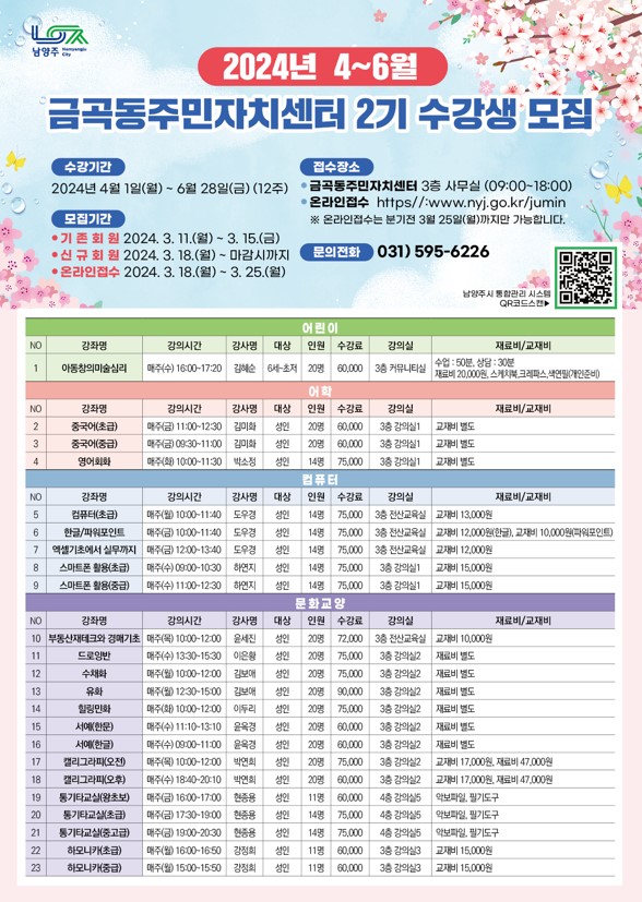 2024년 2분기(4~6월) 금곡동주민자치센터 수강 접수 안내