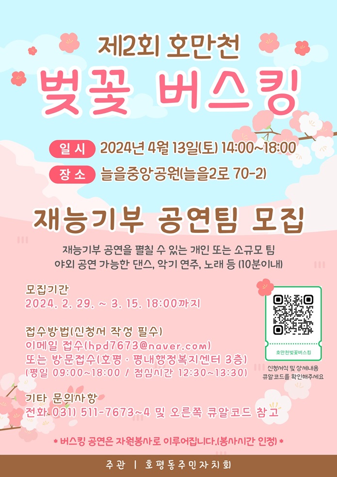 제2회 호만천 벚꽃 버스킹<재능기부 공연팀 모집> ~ 3/15(금)