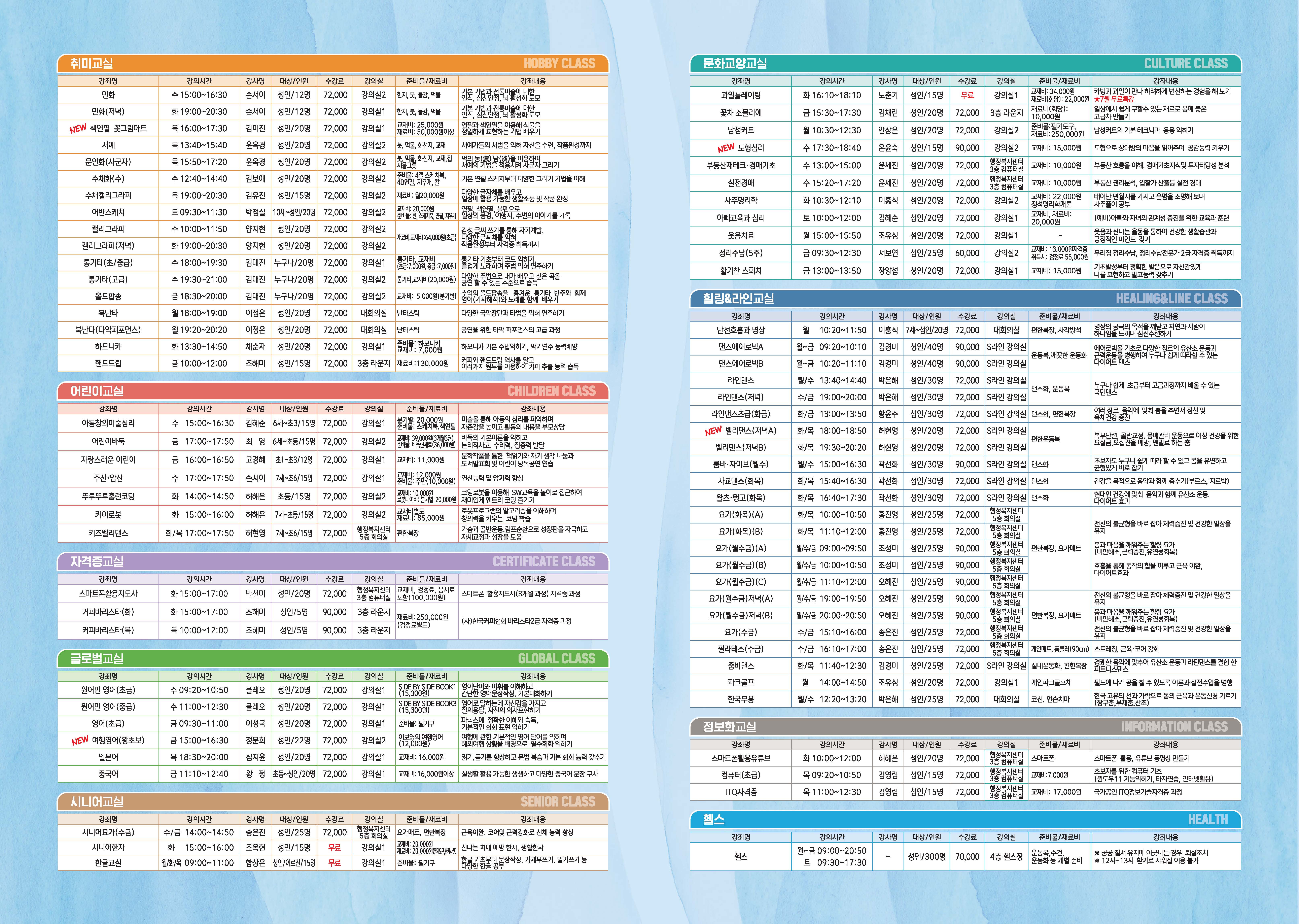 2024년 3분기(7월~9월) 진건읍주민자치센터 수강생 모집