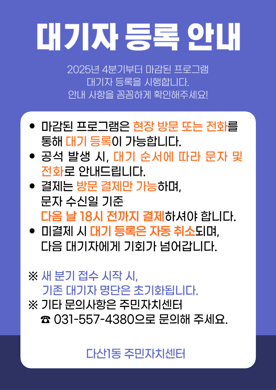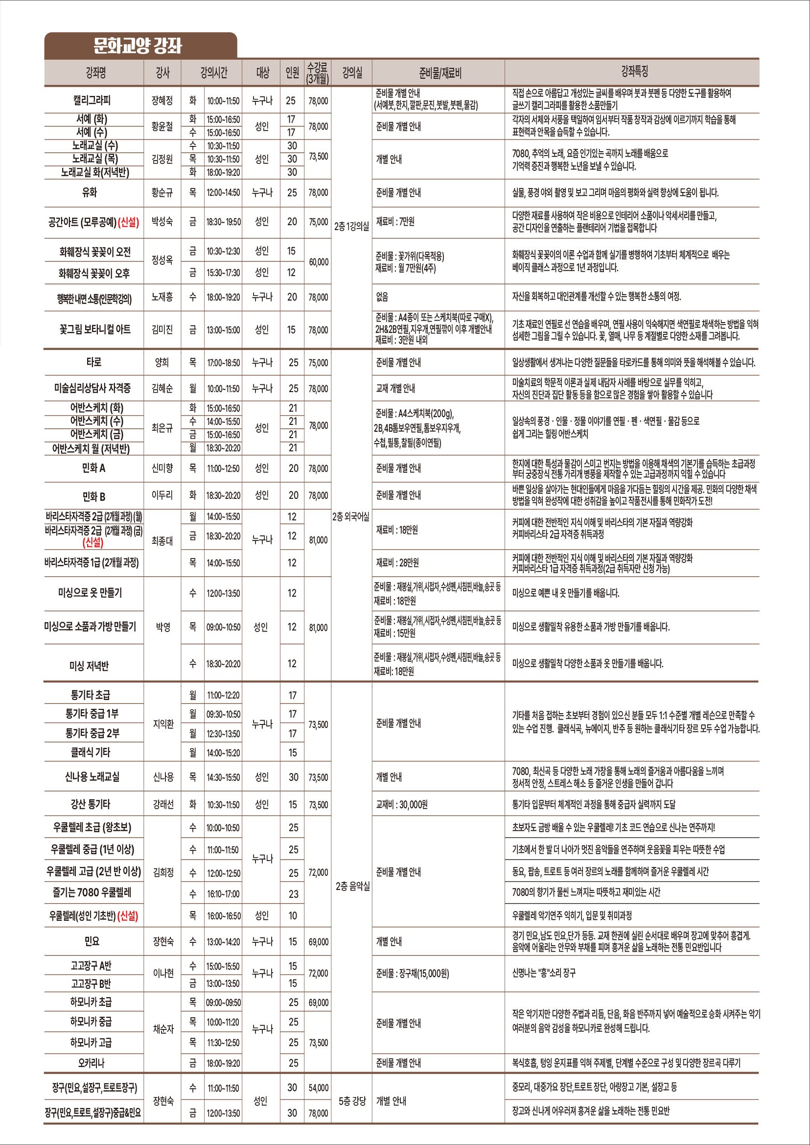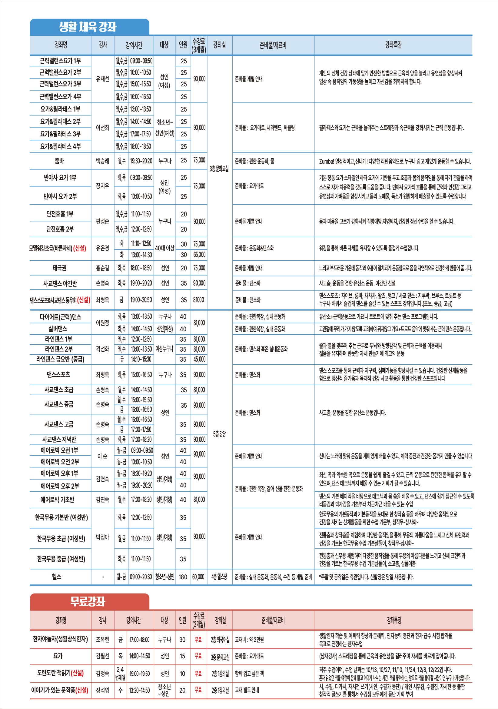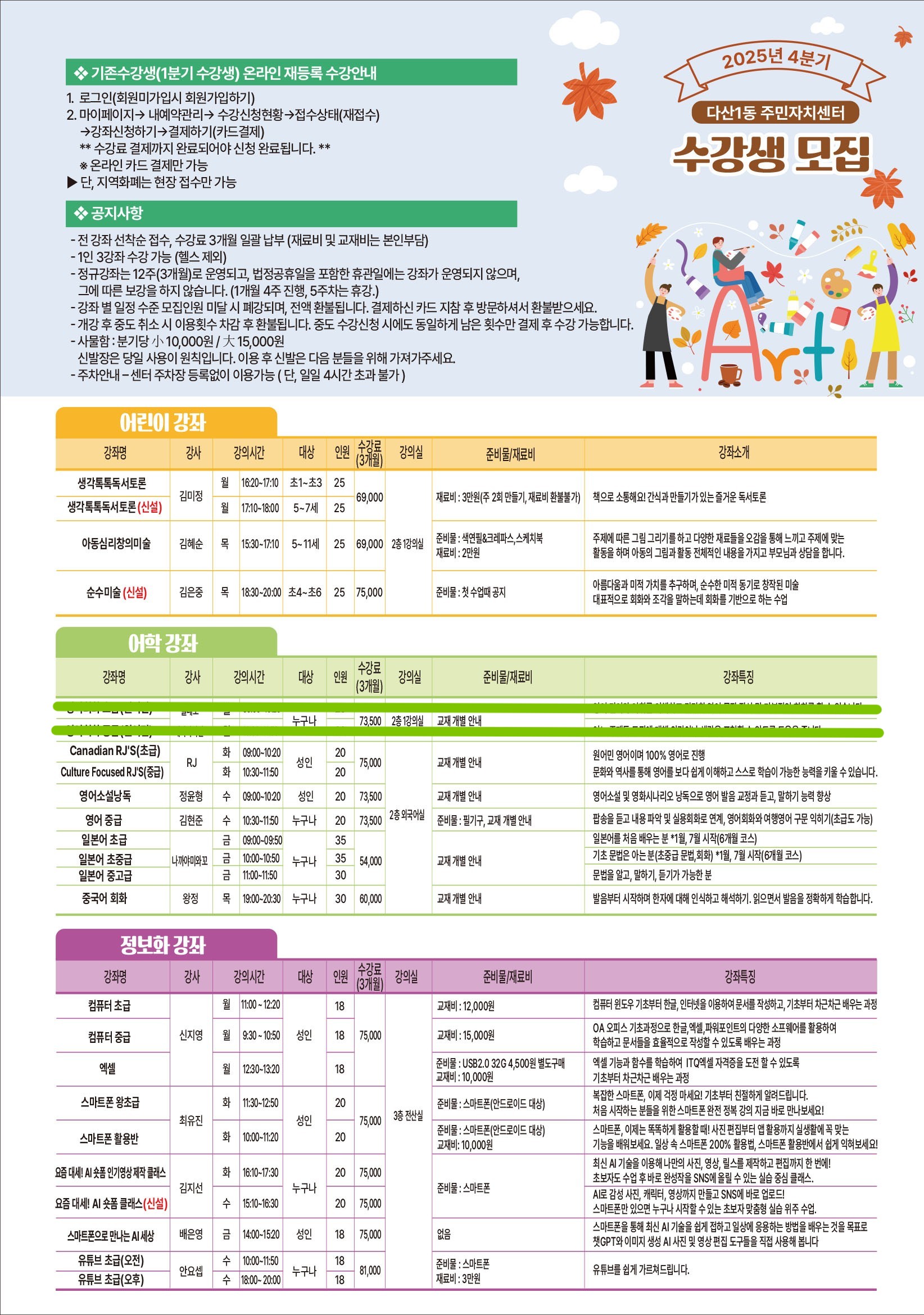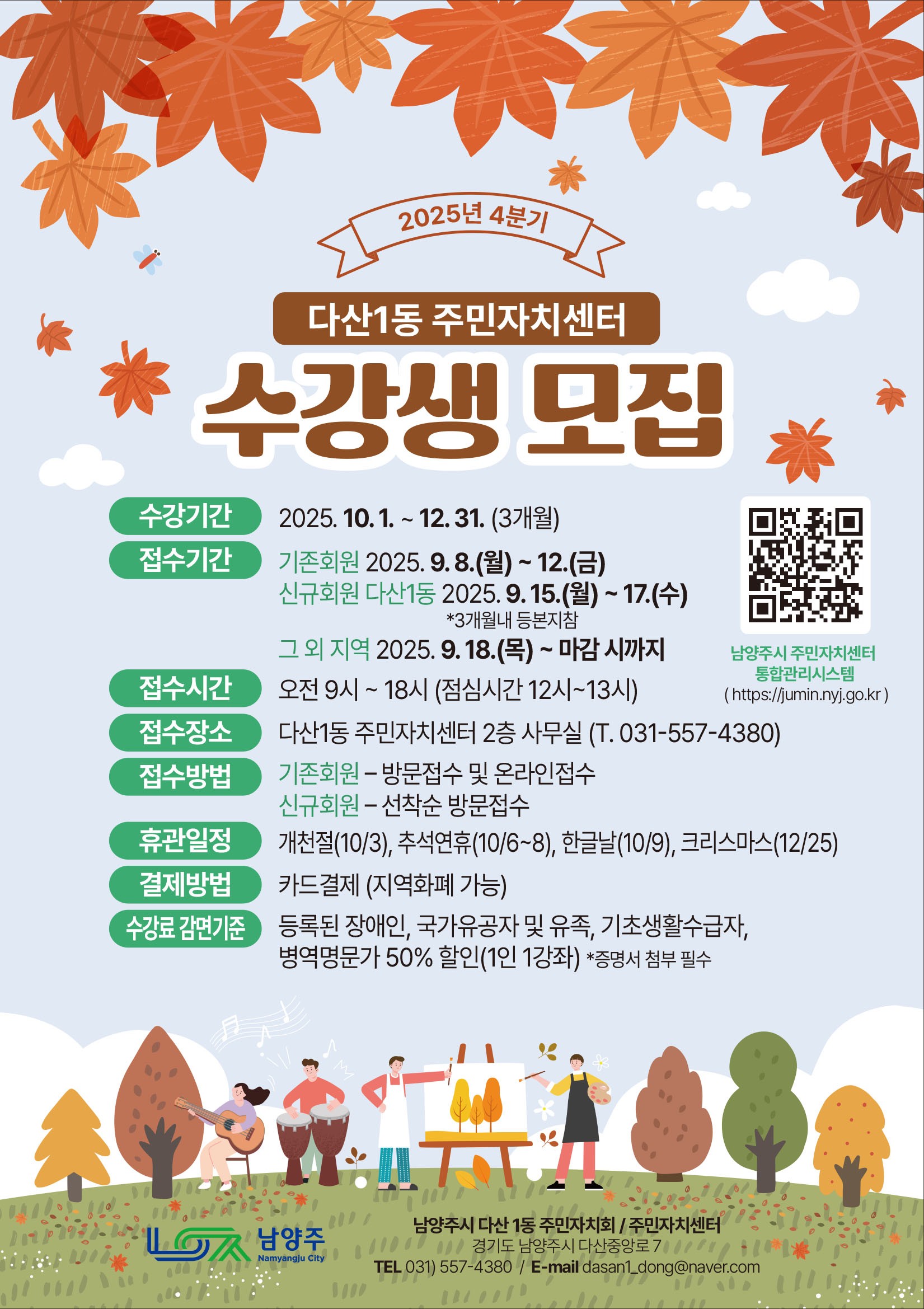2025년 4분기 (10월~12월) 다산1동 주민자치센터 수강생 모집 안내