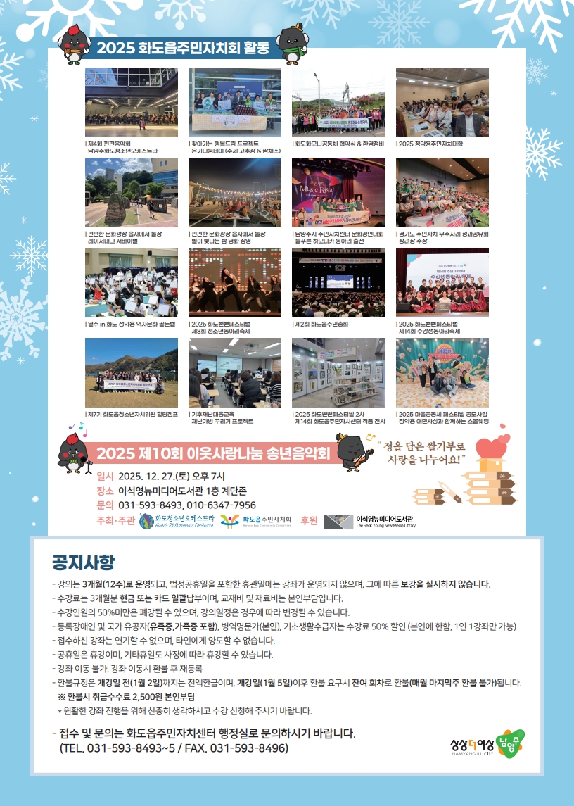 2026년도 1분기(1월~3월) 화도읍주민자치센터 수강생 모집안내