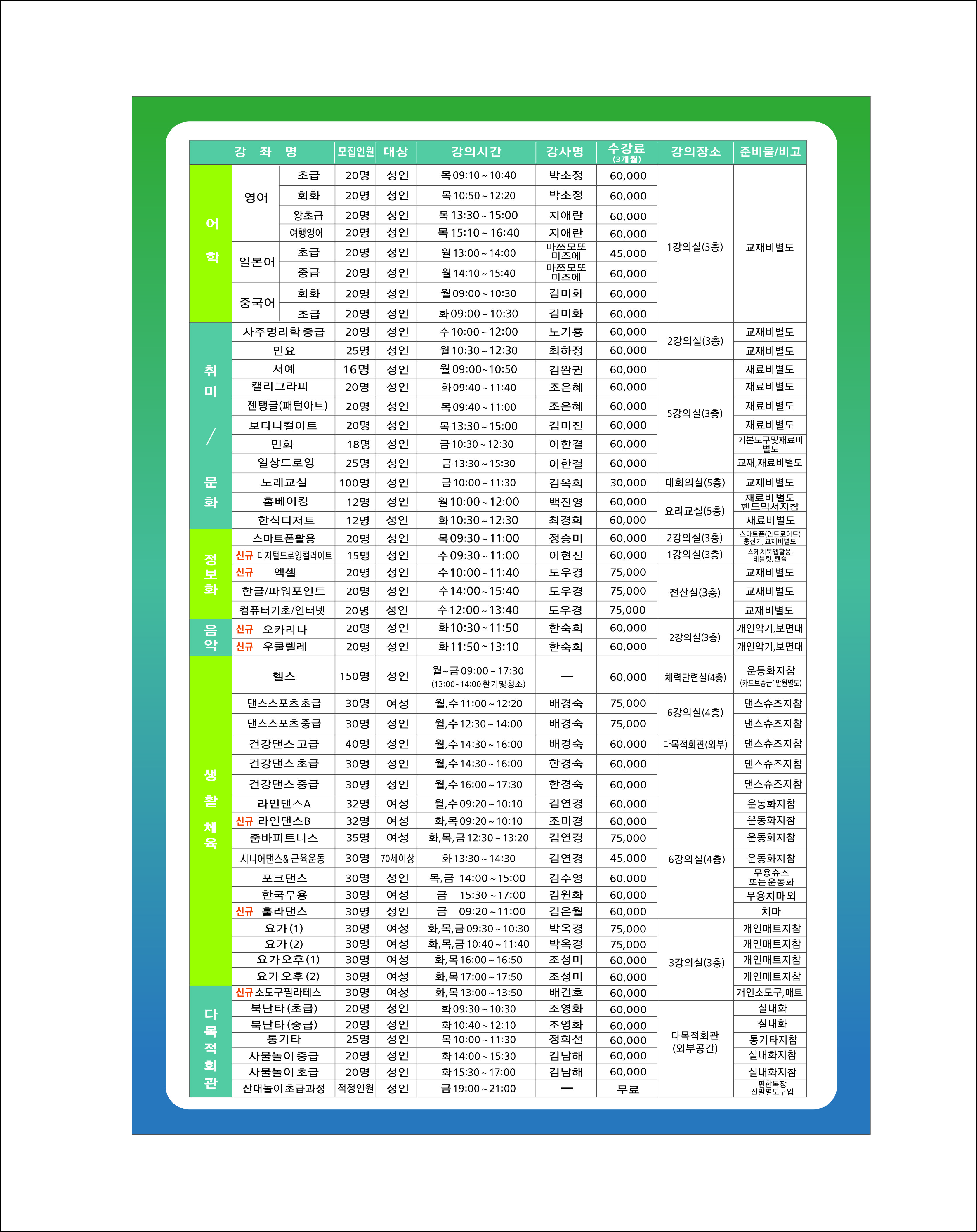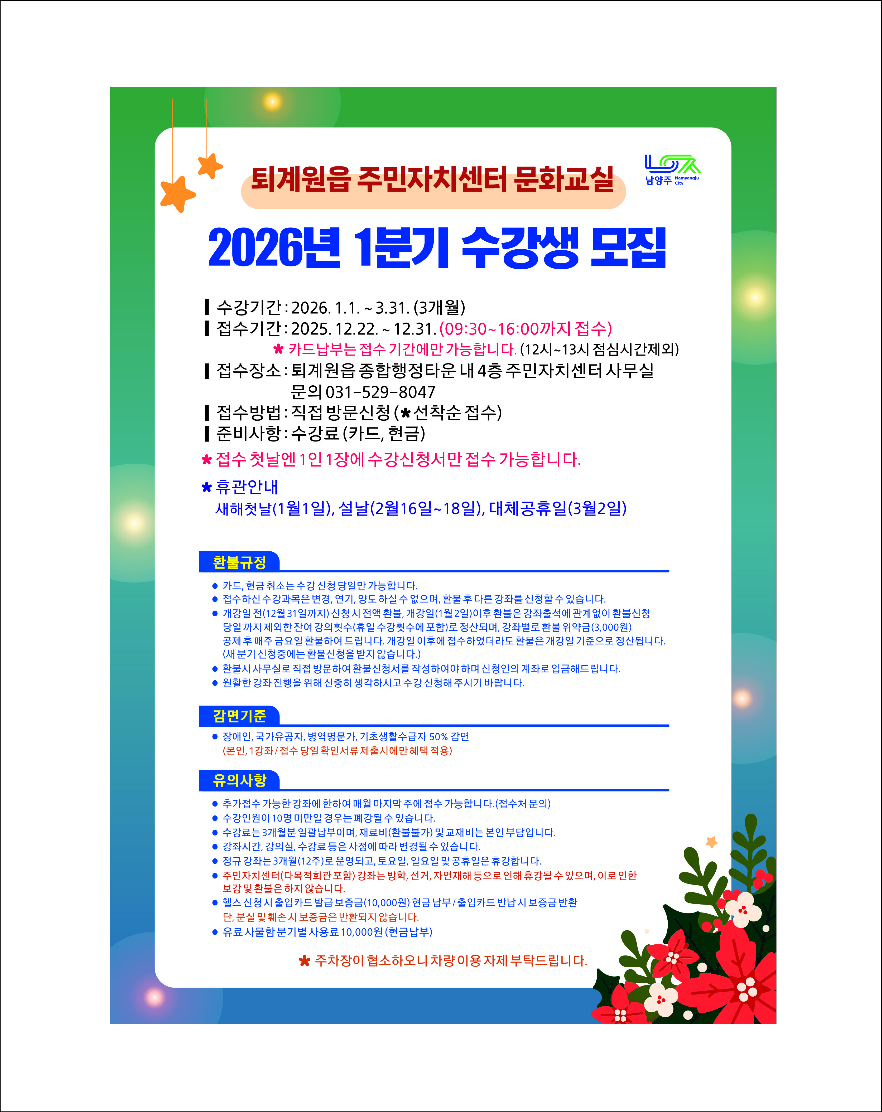 2026년 1분기(1월~3월) 퇴계원읍 주민자치센터 수강생 모집