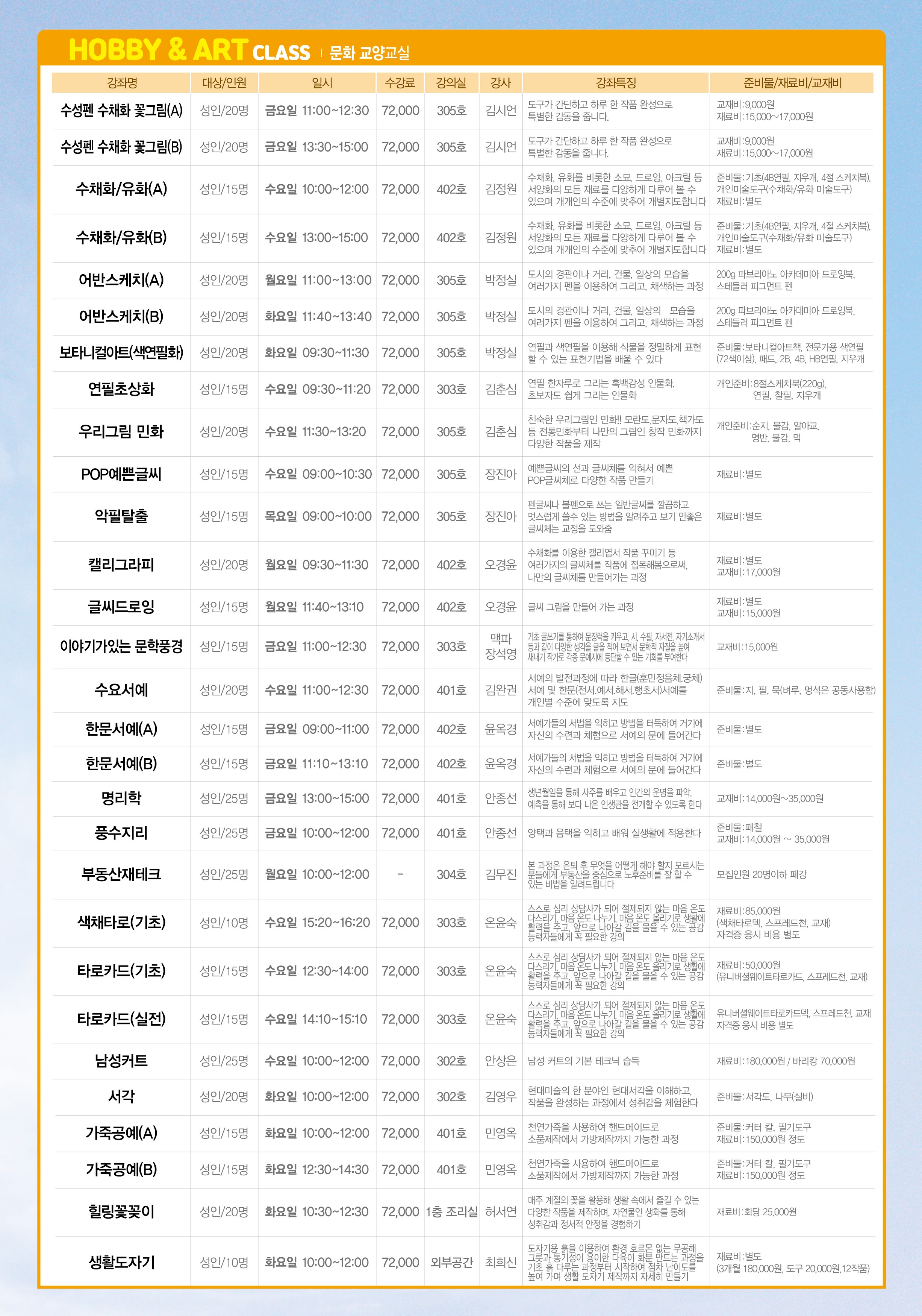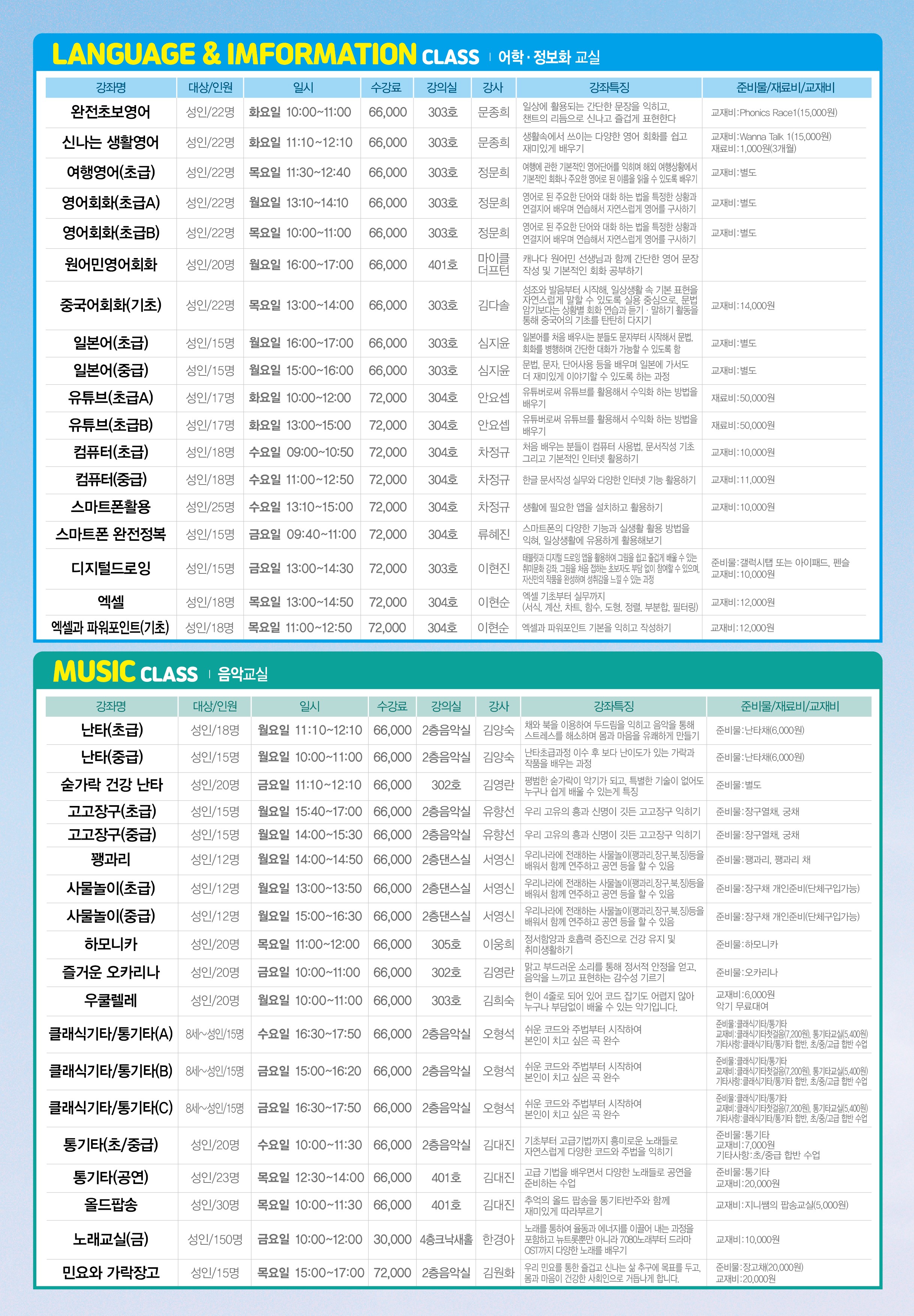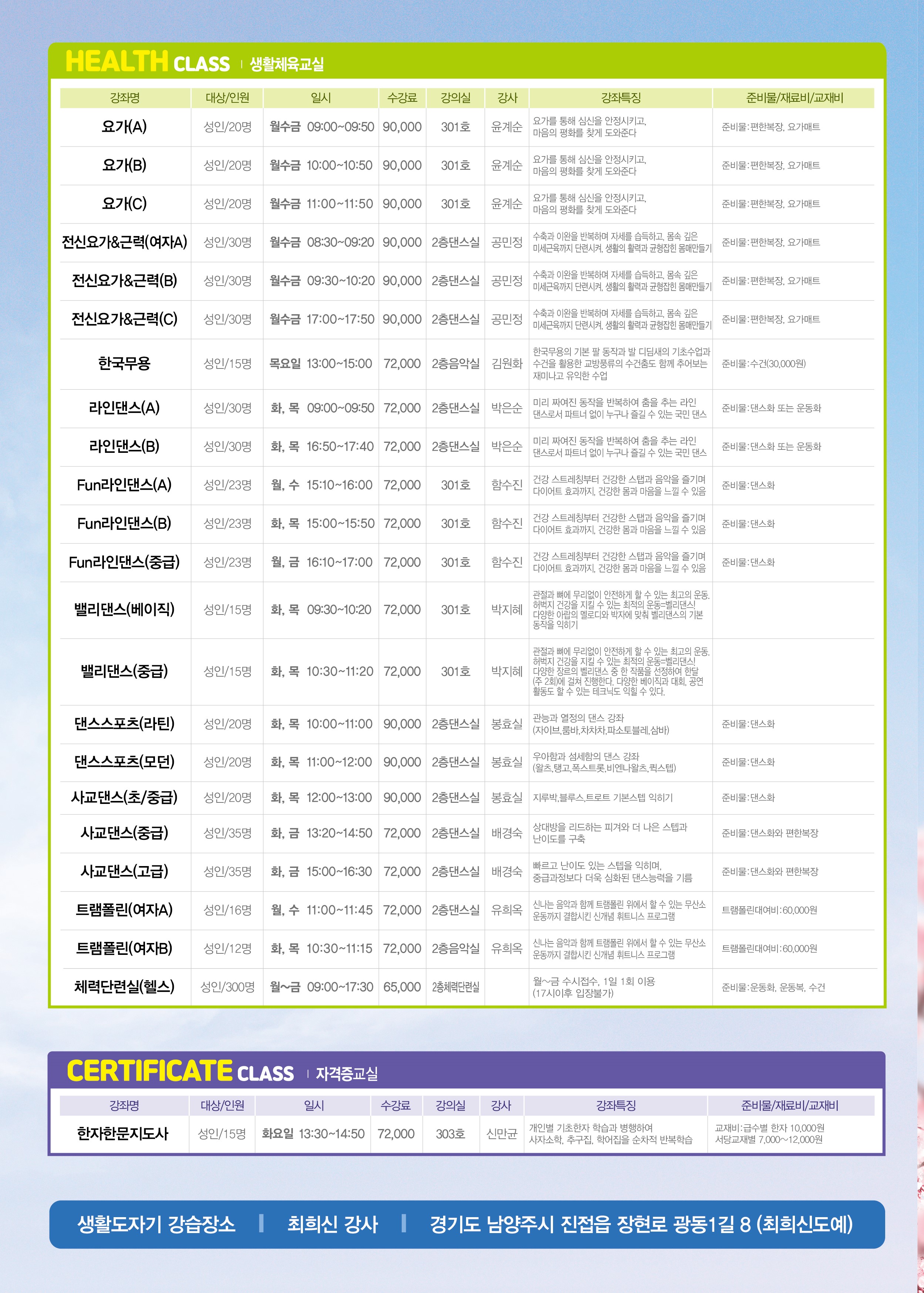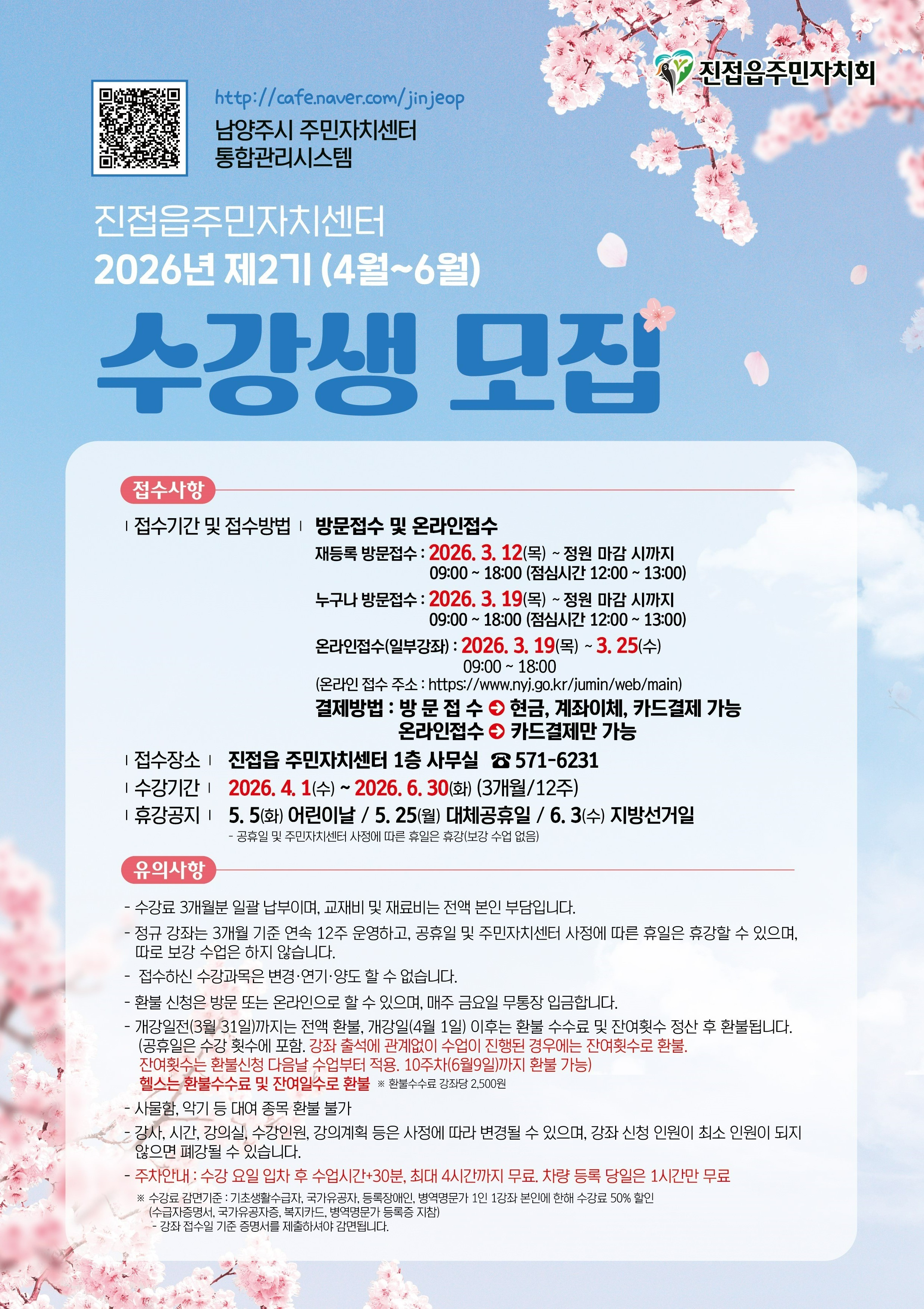 2026년도 2분기(4월~6월) 진접읍 주민자치센터 수강생 모집안내