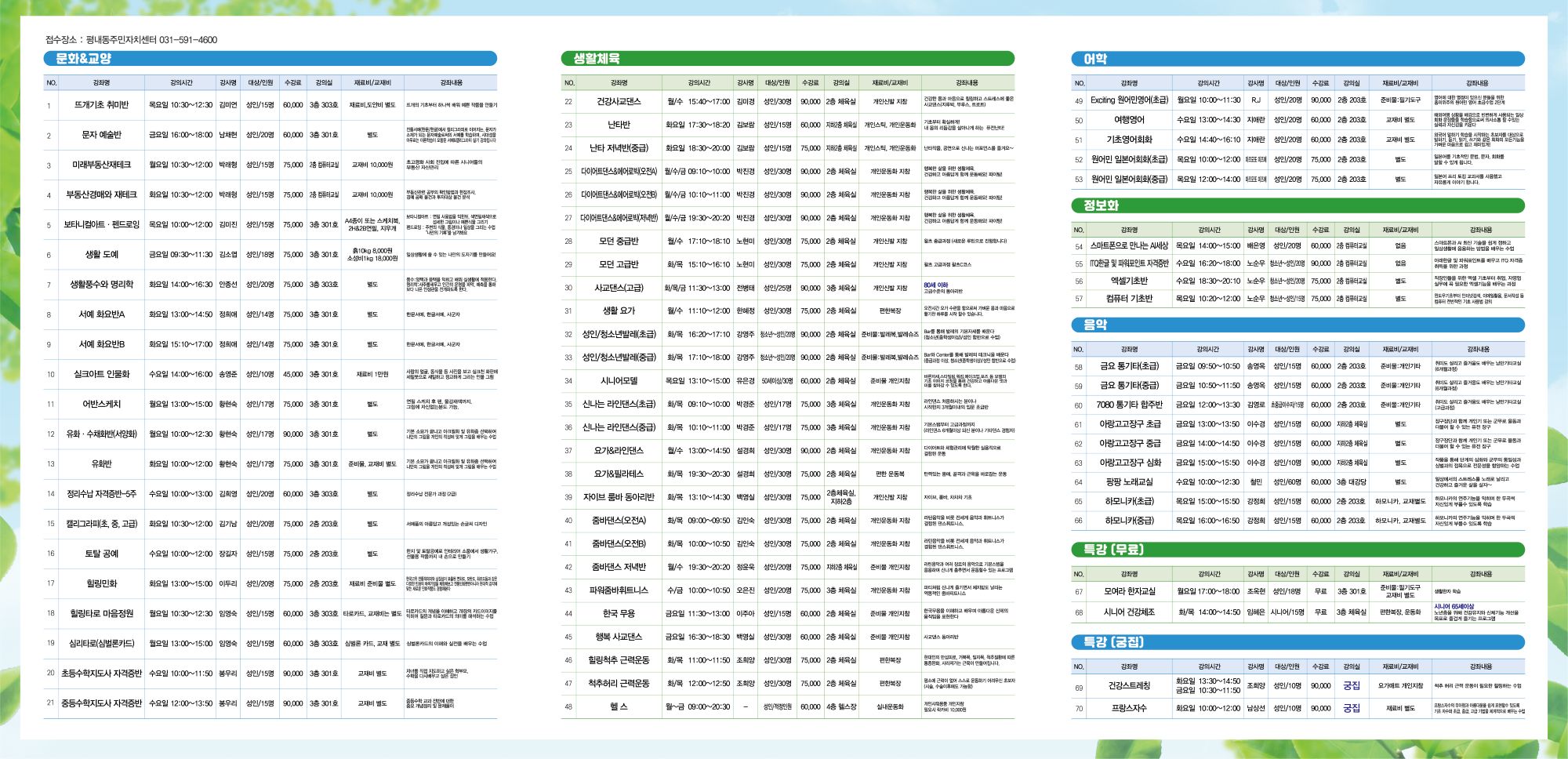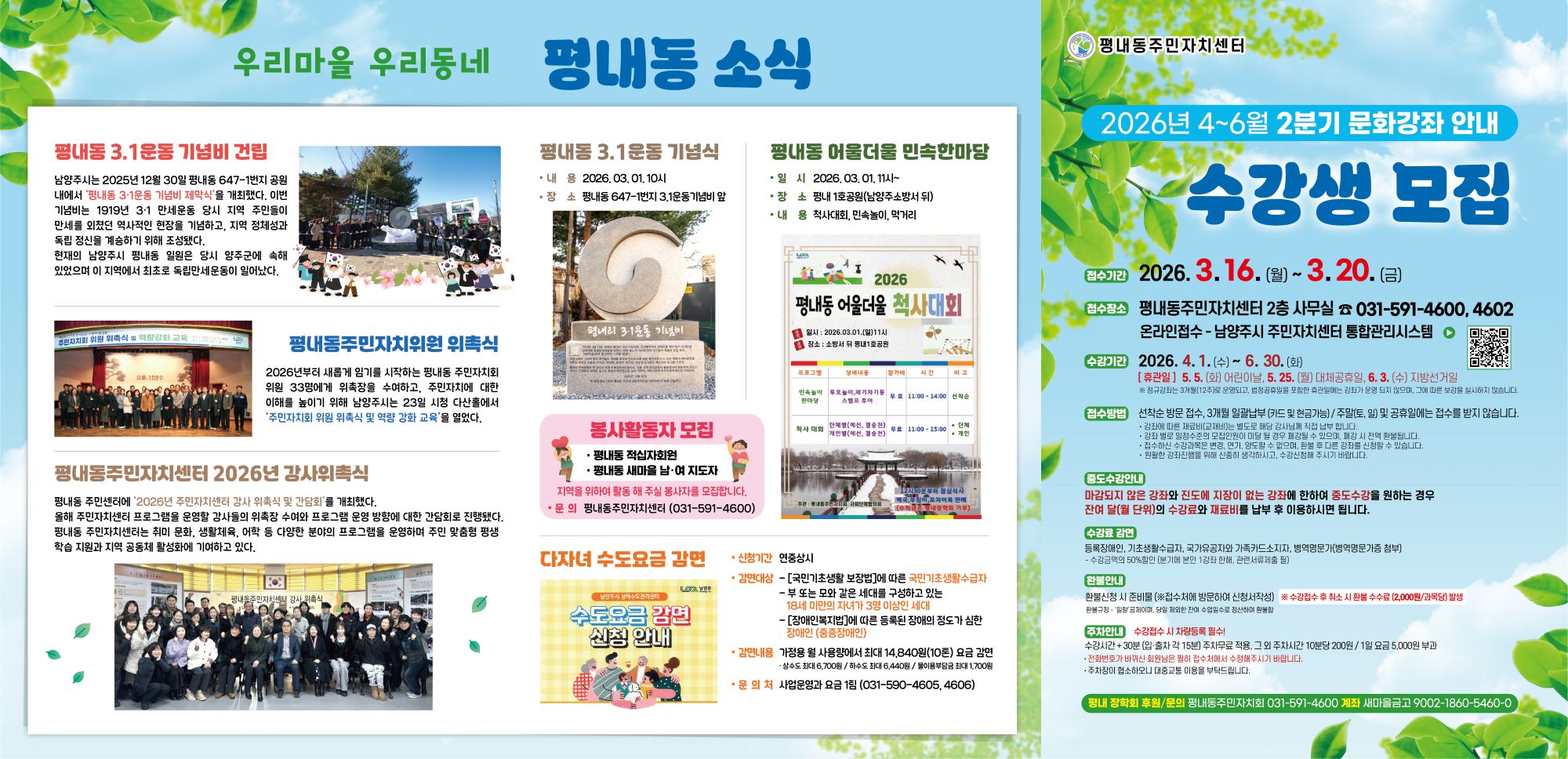 2026년도 2분기(4월~6월) 평내동주민자치센터 수강생 모집